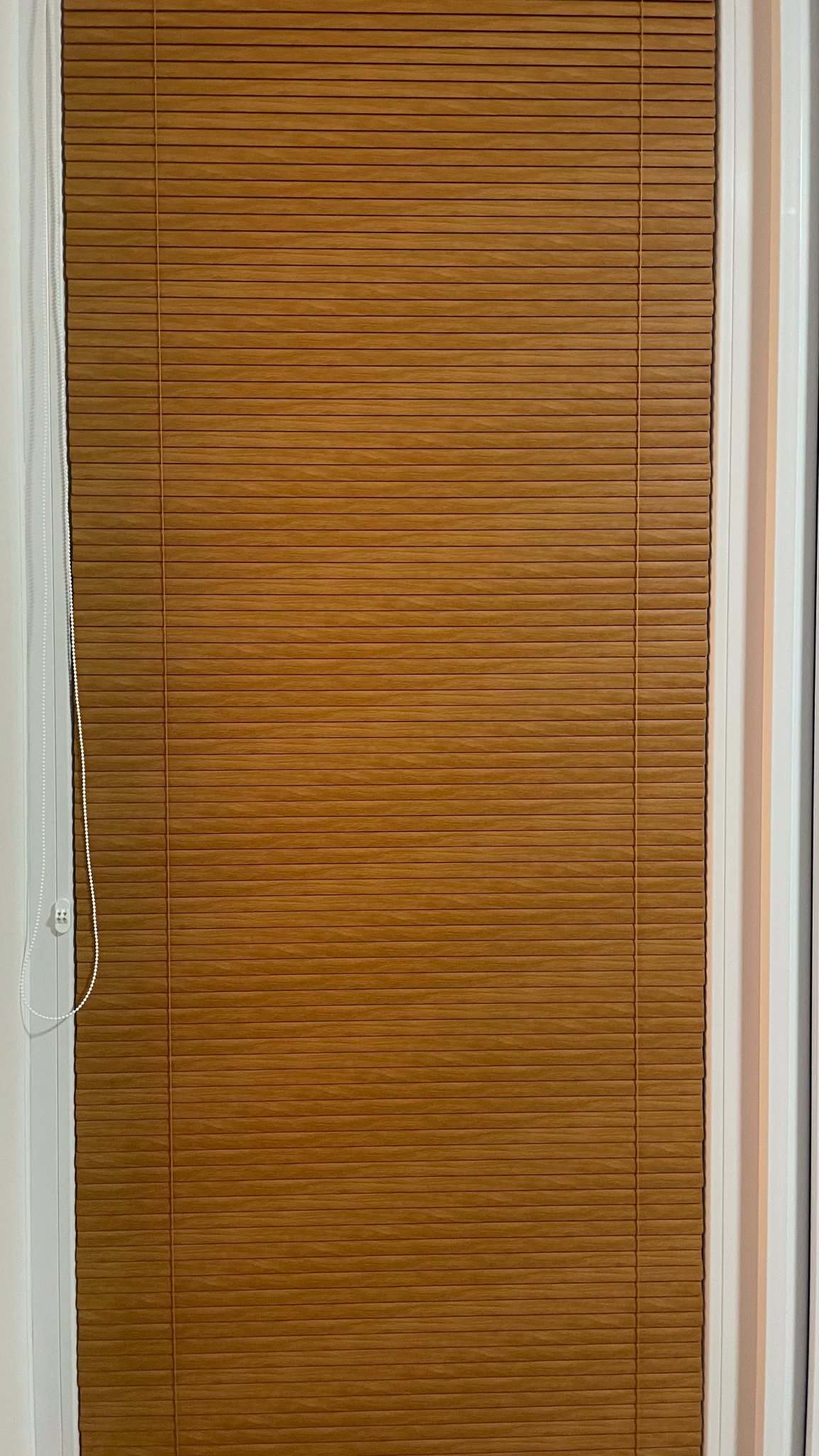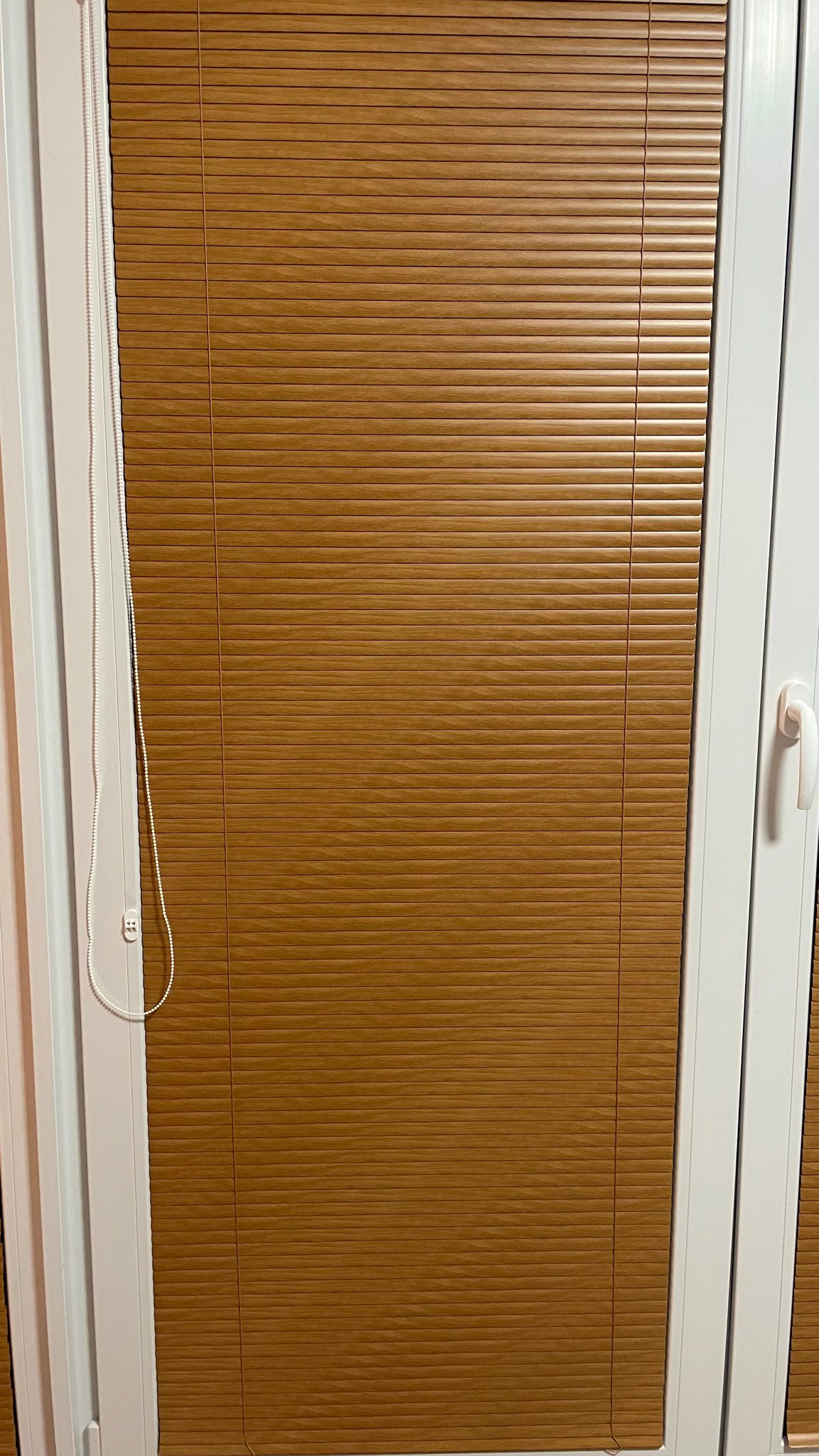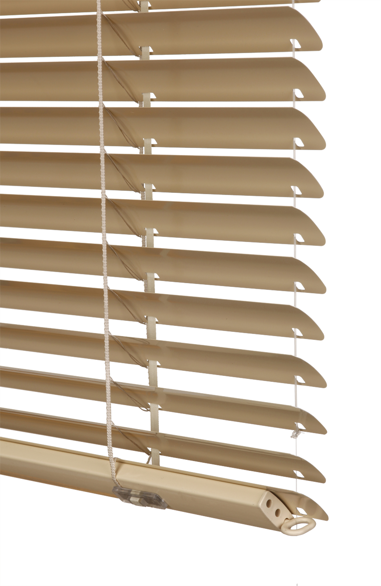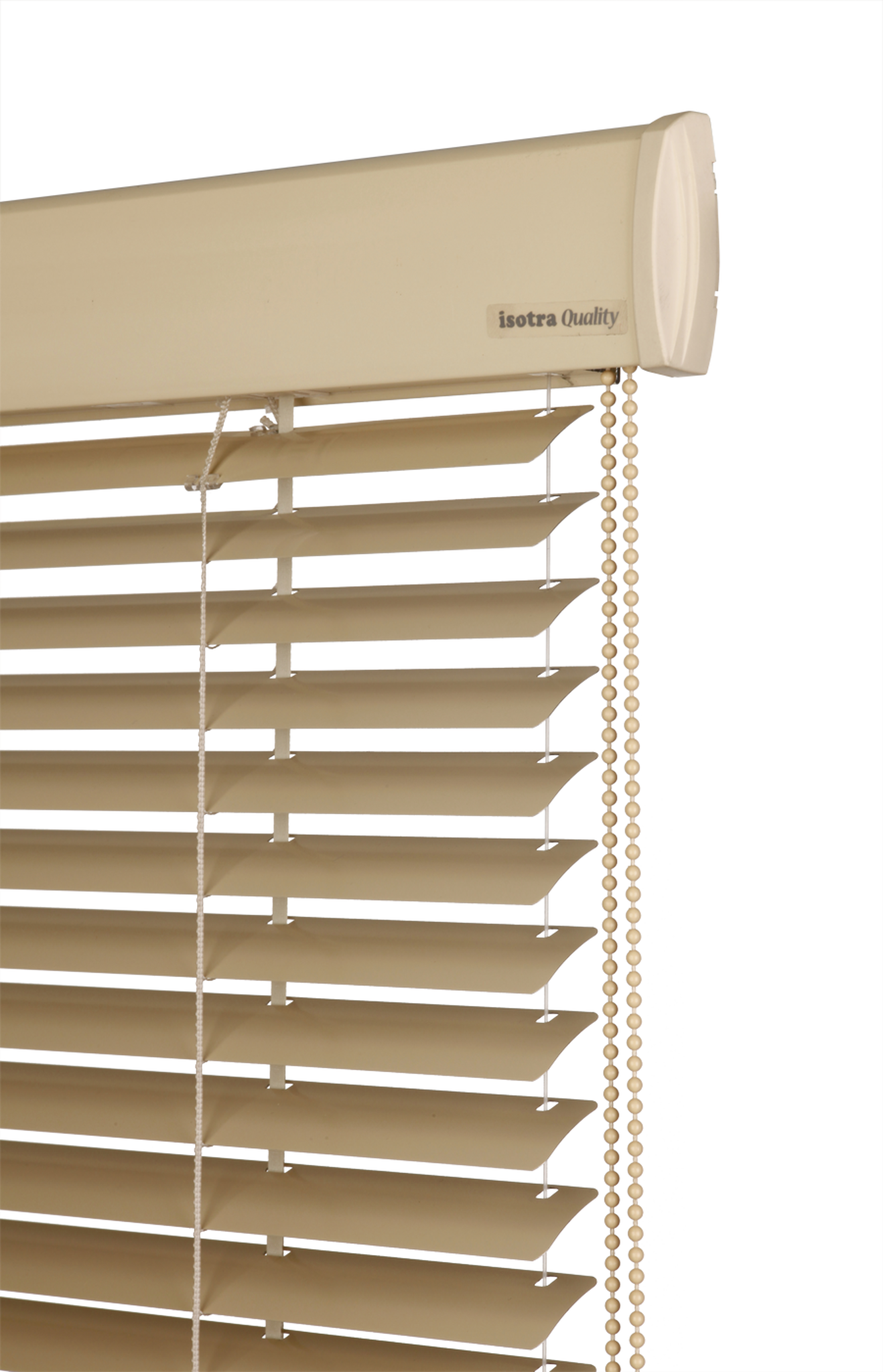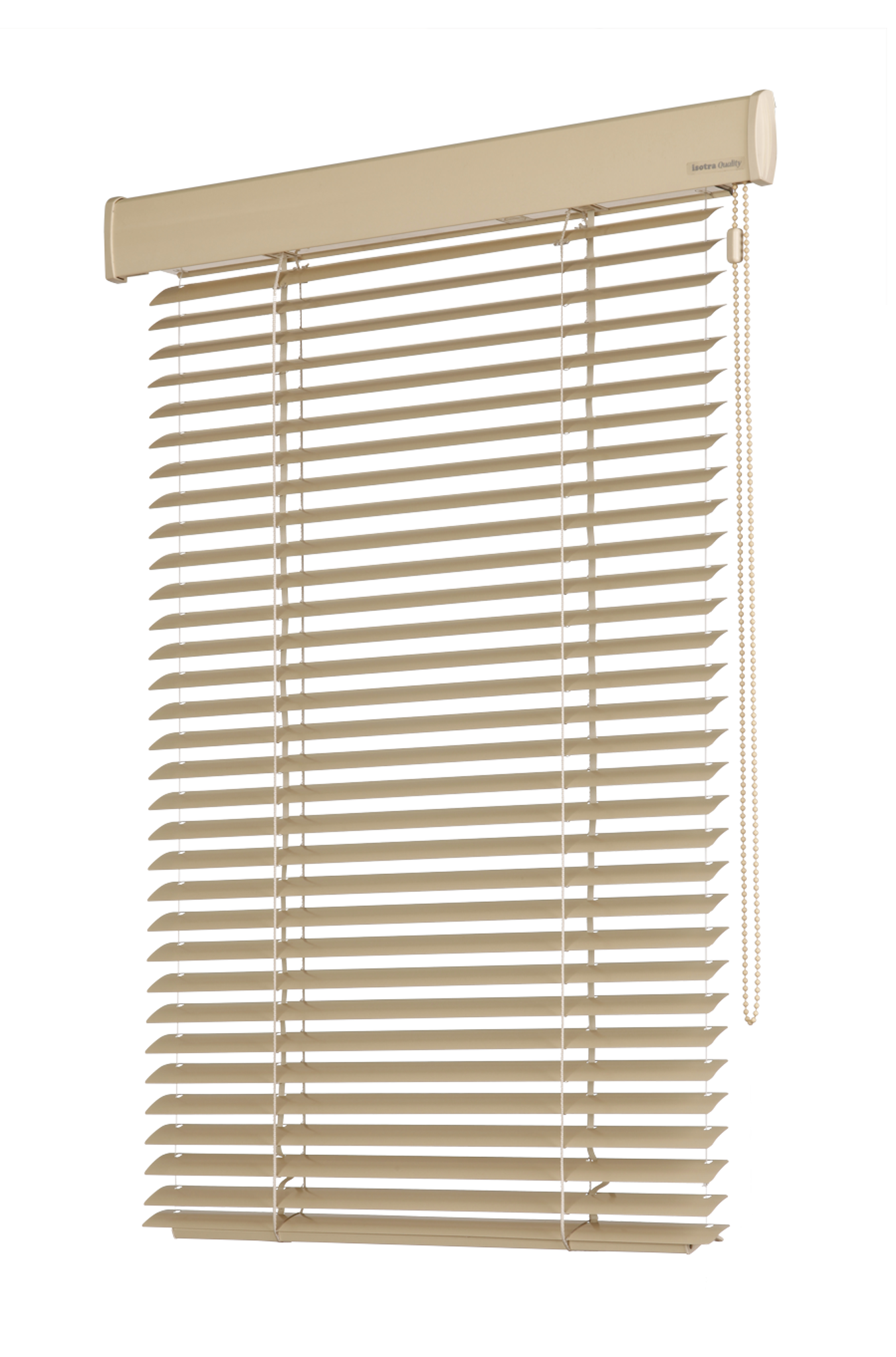 tenkým řetízkem (Ø 3,2 mm) s textilním páskem pro vytahování, spouštění a naklápění lamel.