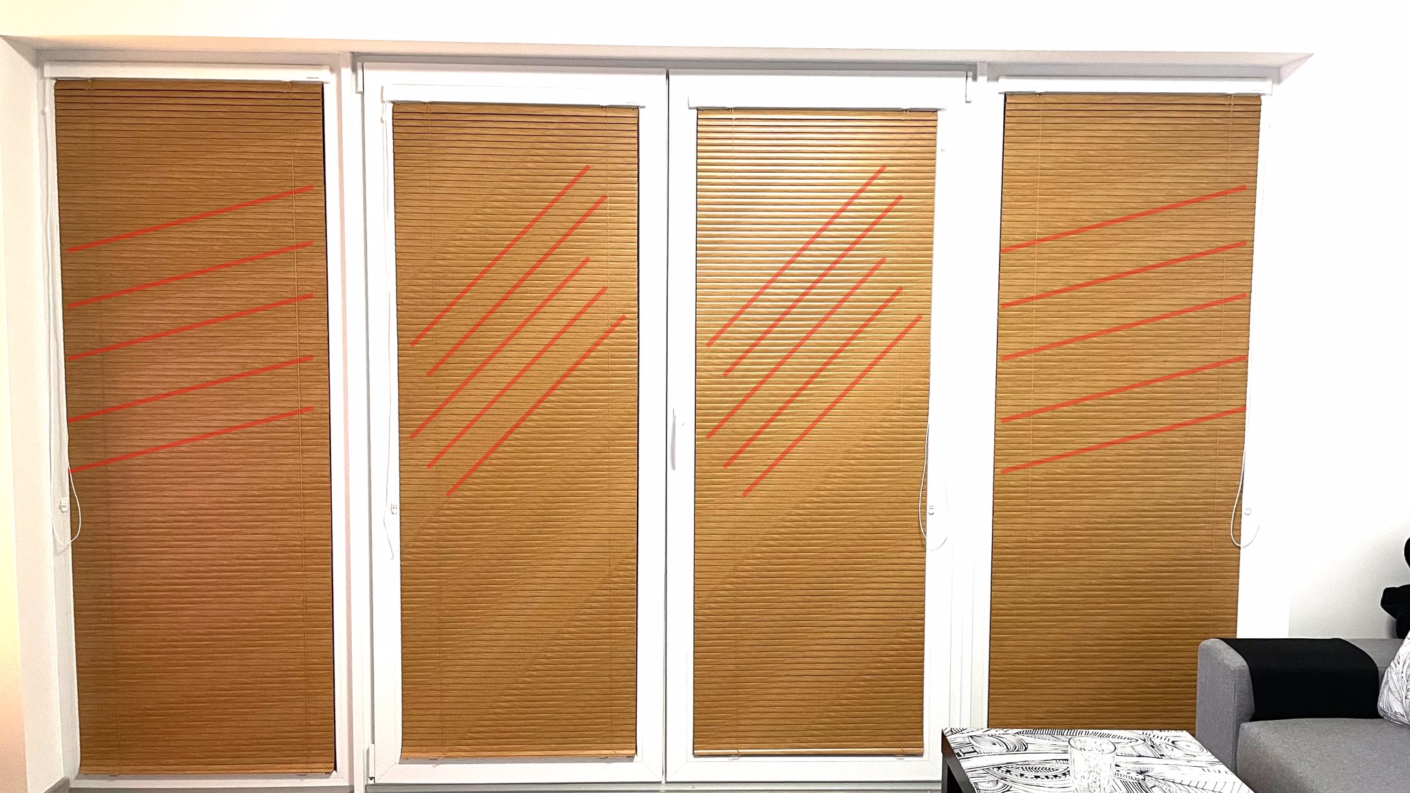 Upozornění k lamelám v barvách imitace dřeva.
