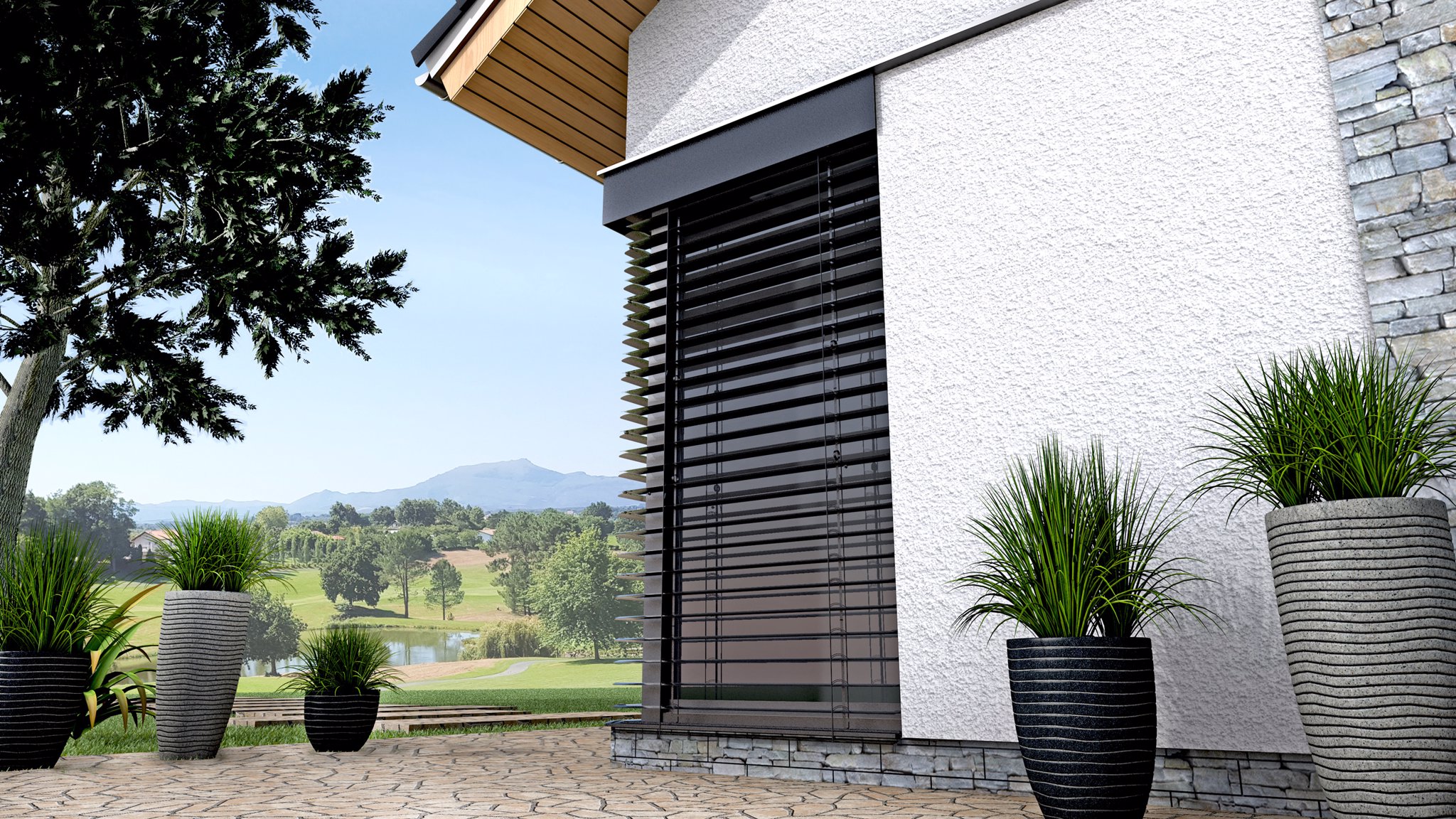 • zastínění velkých rohových oken